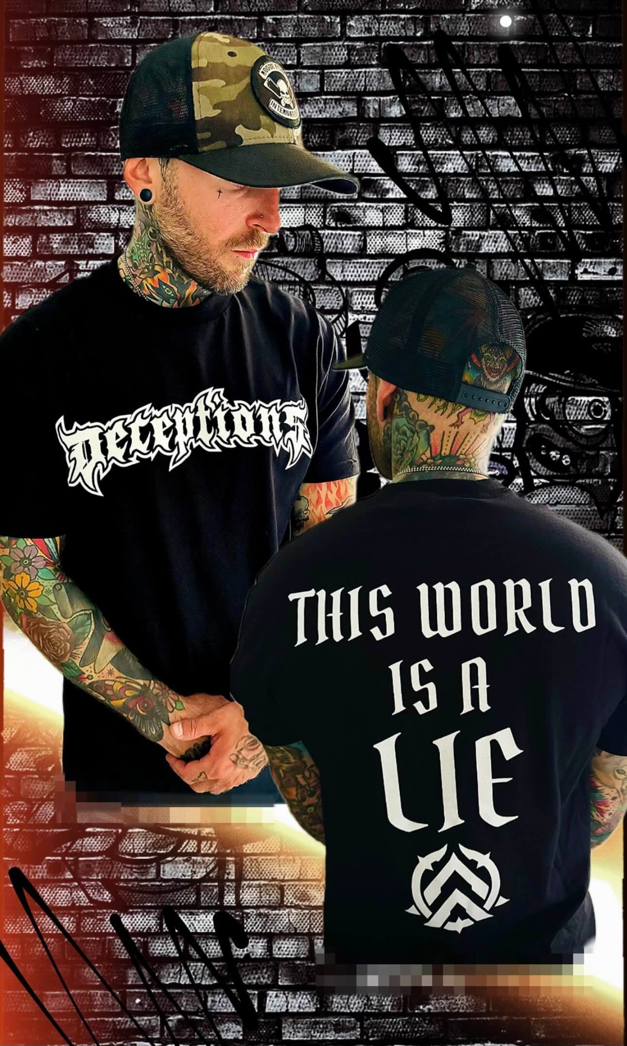 Deceptions logo on front / This world is a lie with emblem on back